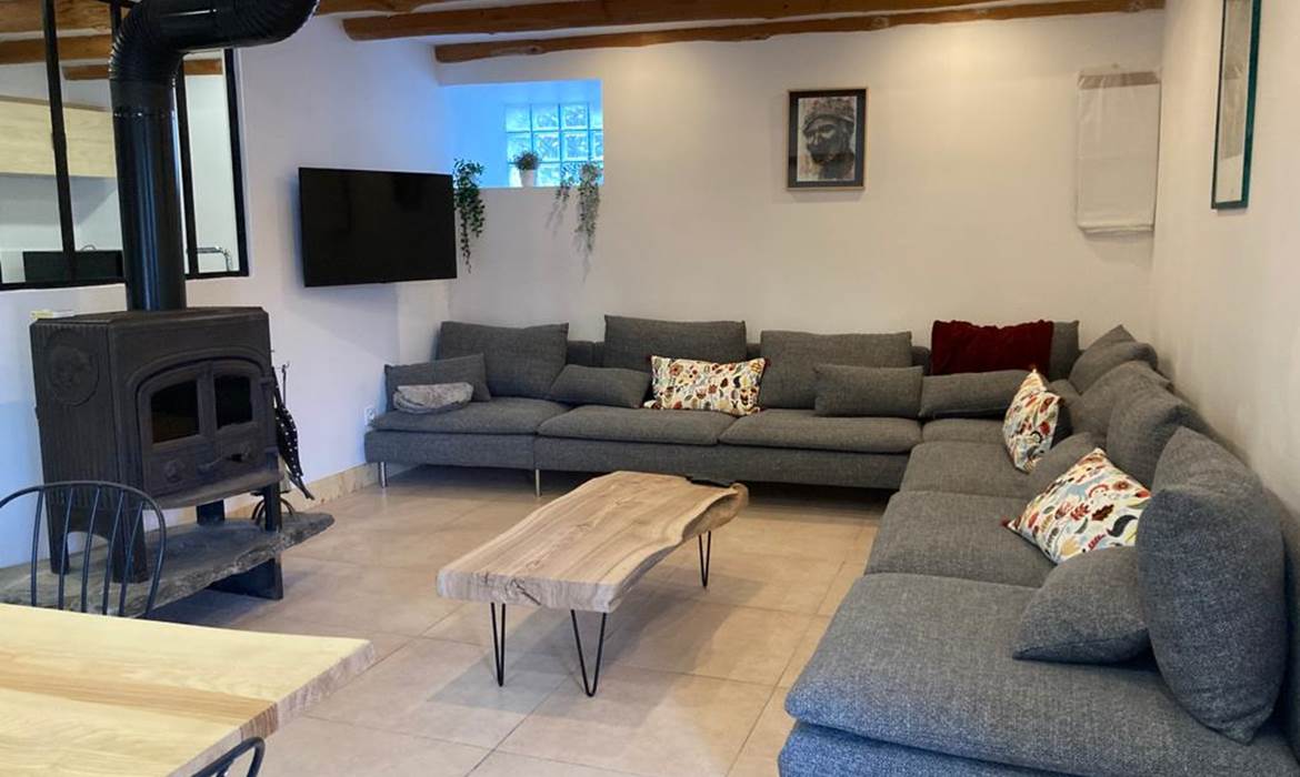 La pièce à vivre, tout juste rénovée, propose tous les équipements nécessaires pour la vie de groupe :